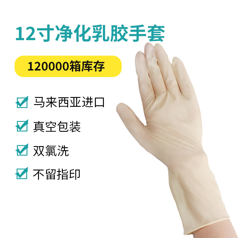 长度≥280mm,主要由天然乳胶(天然橡胶)制成。天然乳胶是从橡胶树中提取的液体乳状物,经过凝固、干燥、硫化等一系列工艺处理后制成手套。净化千级需在严格的洁净环境中生产,通过4-8次氯洗后,在进行清水过滤后,主要是去除手套内部的粉末残留,以降低微粒污染风险。