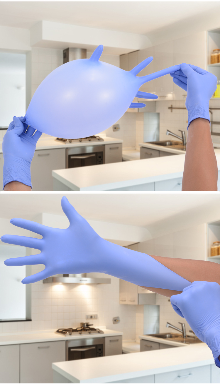 丁腈手套的正确使用涉及几个关键步骤,以确保手部得到有效保护并延长手套的使用寿命。以下是正确使用丁腈手套的指南:1.选择合适的尺寸:确保选择合适尺寸的手套,以便它